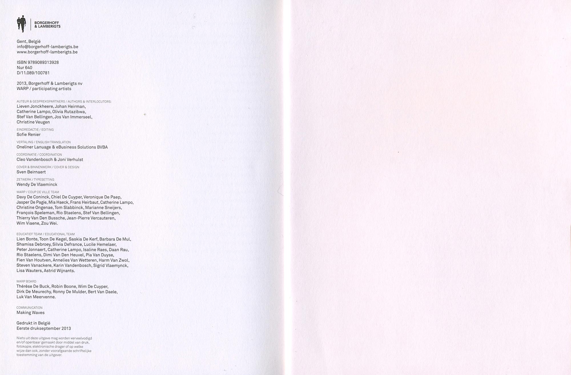 Text by Lieven Jonckheere, Johan Heirman, Catherine Lampo, Olivia Rutazibwa, Stef Van Bellingen, Jos Van Immerseel and Christine Veugen
