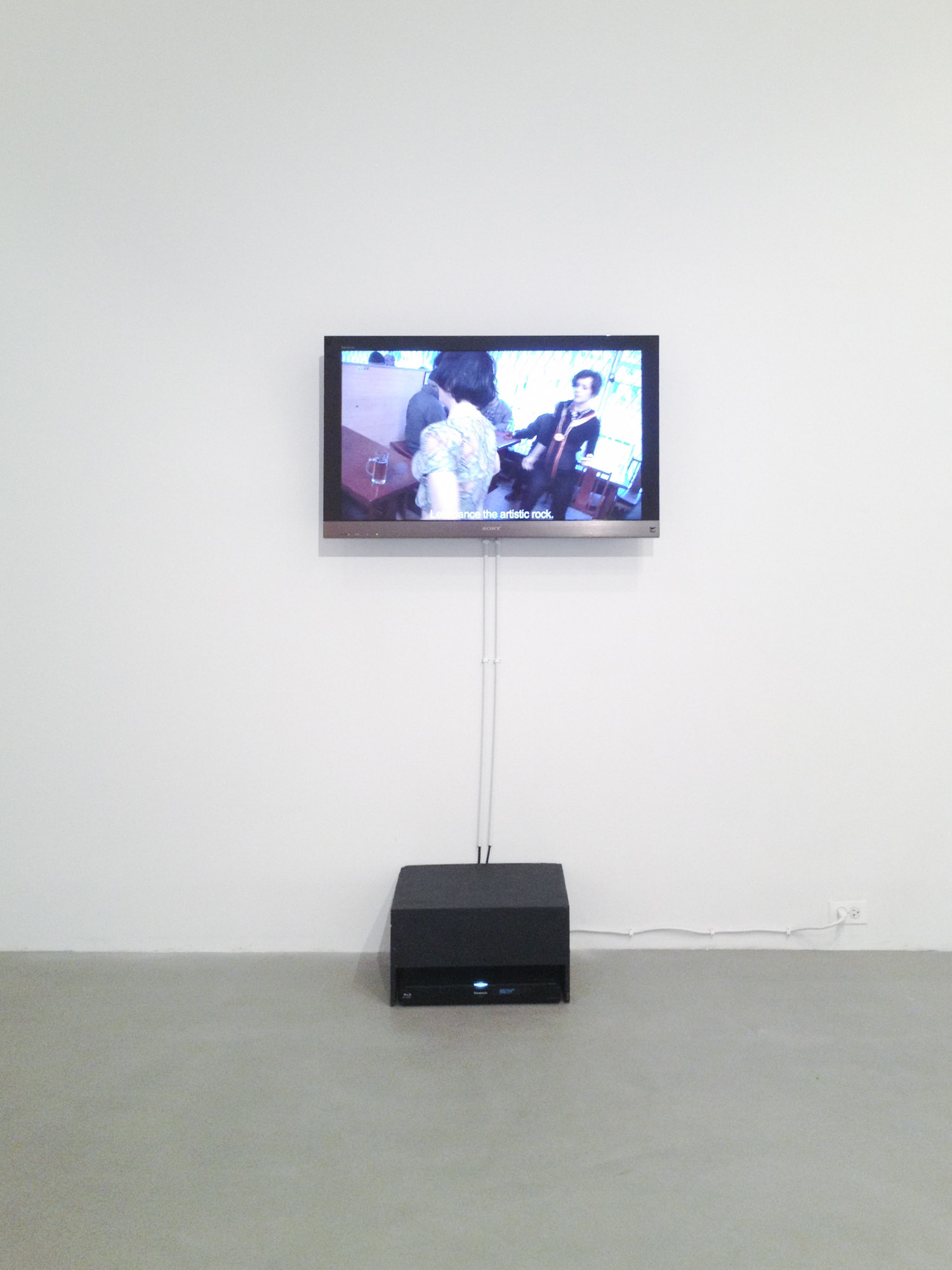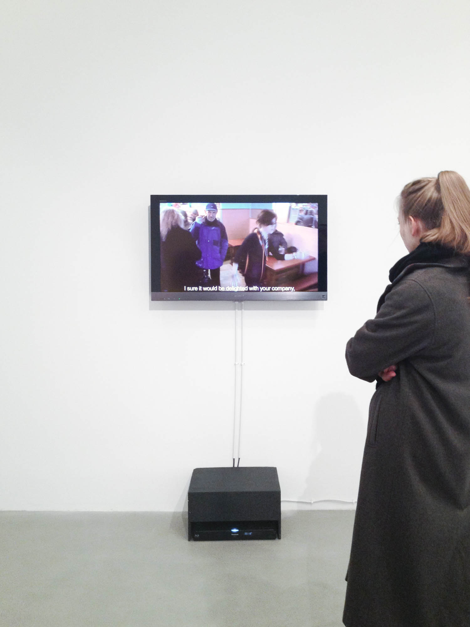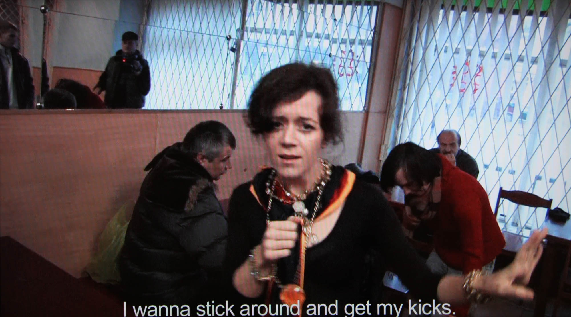 In Are You Lonesome Tonight?, the artist turns to direct performance in a public space, engaging unsuspecting patrons in a local Lithuanian bar. Reimagining Elvis’s Jailhouse Rock through a gender-reversed lens, she transforms the everyday environment of casual drinkers into a charged site where gender and power dynamics are renegotiated in real time.