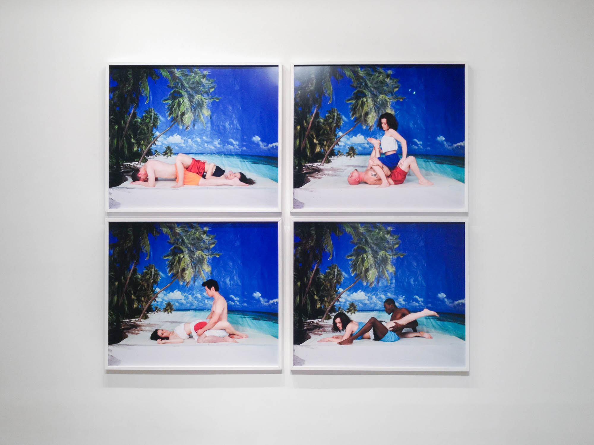 No Country is a photo series in which the artist appears alongside various men amid fabricated tropical backdrops that evoke both escapism and confinement. By mimicking gestures of seduction and leisure, she stages a subtle performance of displacement, questioning belonging, femininity, and the desire for utopia within mediated space. The work blurs distinctions between subject and setting, intimacy and performance, ultimately revealing the constructed nature of identity and desire.