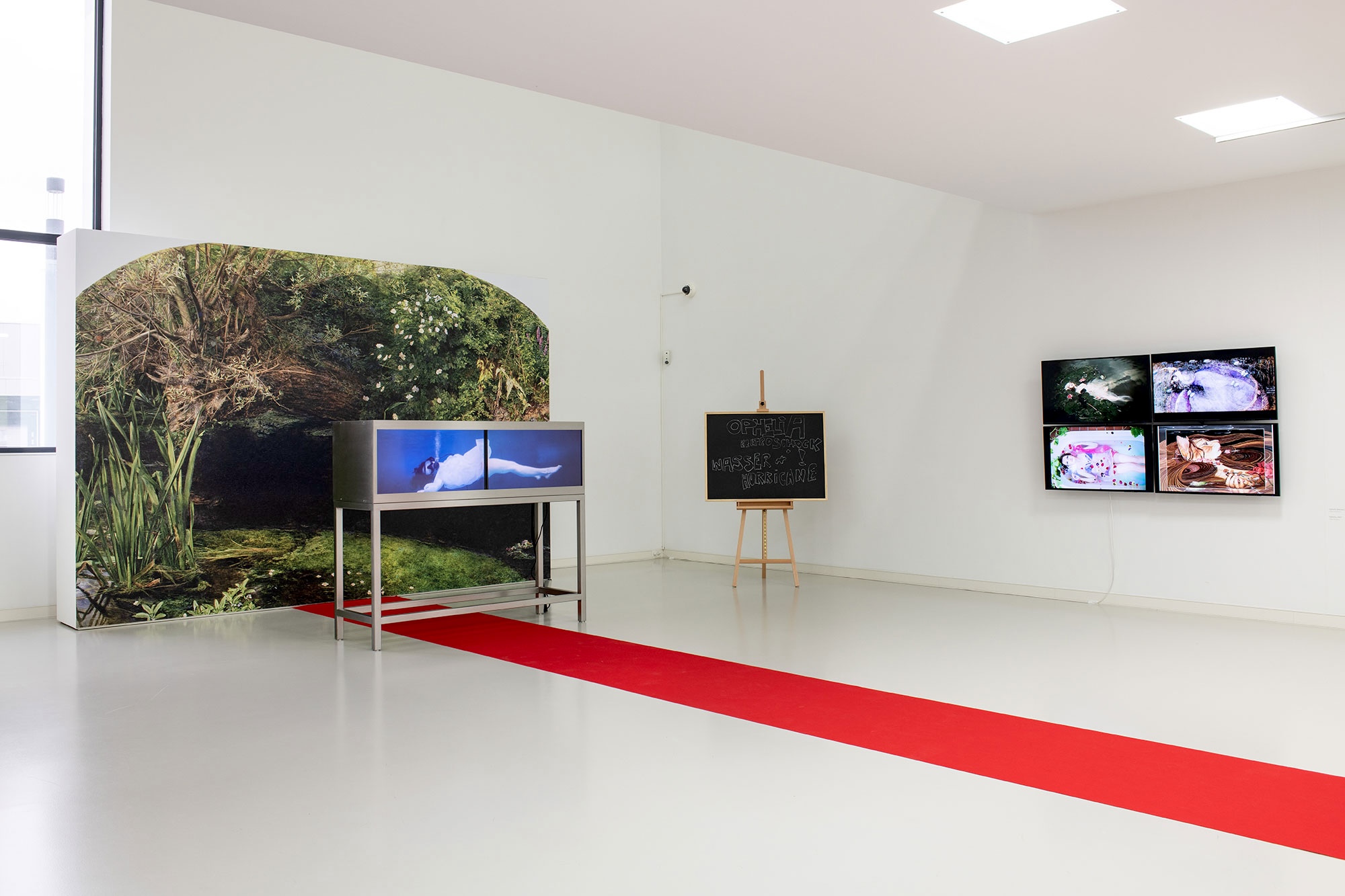 OPHELIA is an interdisciplinary performance that premieres as a live performance on 10 February 2019 at SCHAUWERK and continues as a video installation inside the solo museum show until 30 June. The work reflects on humanity’s destructive impact on nature while forging connections between art, literature, and science. Marcin, wearing a saltwater solution, a breathing mask, and a white gown, attempts to recite Daniil Kharms’ text The Werld under water, exploring human perception. Since December 2017, OPHELIA has been performed at various international locations, including San Francisco, Santa Cruz (Bolivia), and Cologne.