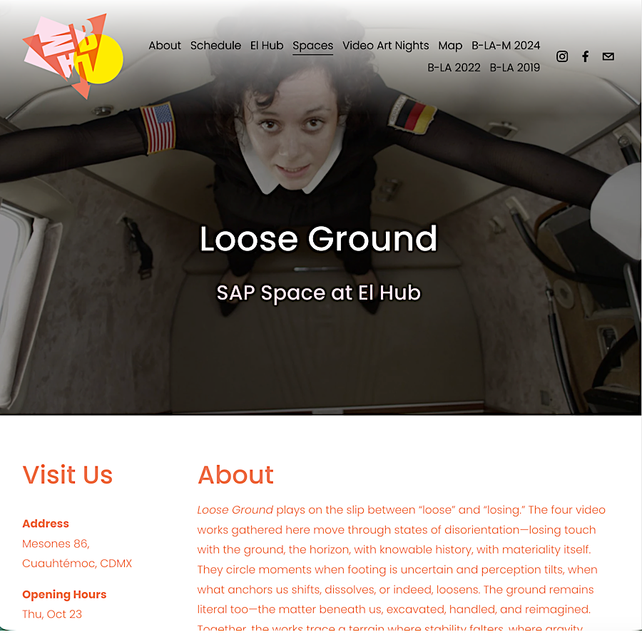 “Zero Gravity” will be on view in “Loose Ground” at SAP Space at El Hub MX as part of the B-LA-M Festival in Mexico City, an exhibition exploring moments when perception slips, stability falters, and what anchors us begins to move.