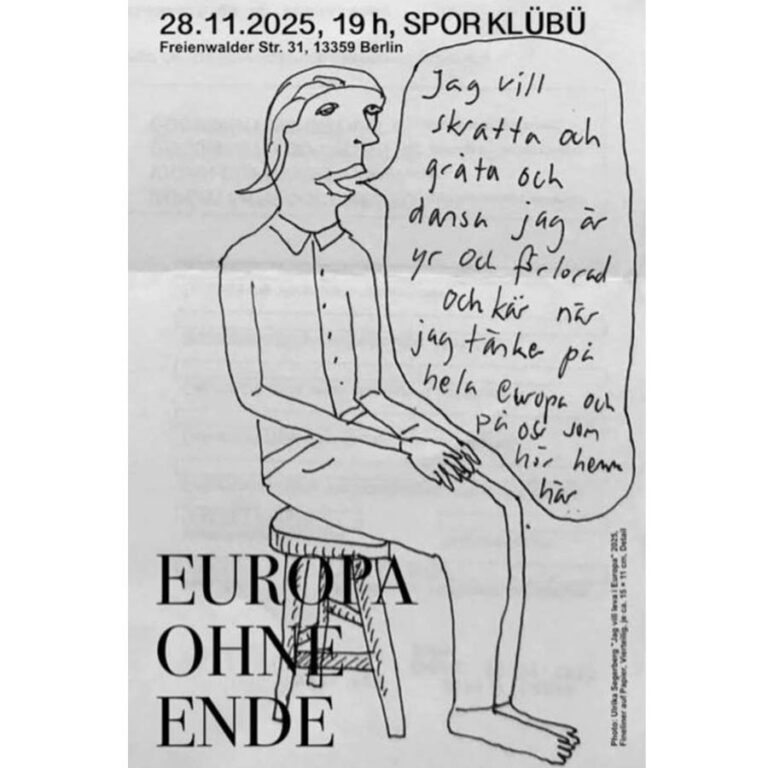 Spor Klübü’s annual One Night Group Show will take place on November 28, 2025, at Kolonie Wedding, Berlin. Since 2005, the exhibition series has drawn on quotes from earlier decades—most often the 1980s—to reflect on Europe’s shifting cultural and political narratives. This year’s theme, Europe Without End, considers the continent’s ongoing legacies, suspended between moments of euphoria and states of uncertainty. Among many participating artists—including Janne Hoeltermann, Alex Lebus, Niina Lehtonen Braun, and ANna Tautfest—Nadja Verena Marcin will present her C-print Man (2007). In this work, an almost naked young woman painted grey stages an intimate encounter with the equally naked figure of Ernst Wenck’s 1912 sculpture Money Counter. By embracing the once-authoritative stone figure, she transforms him into a passive, mythic presence—reversing power roles and mirroring the shifting dynamics of contemporary society.